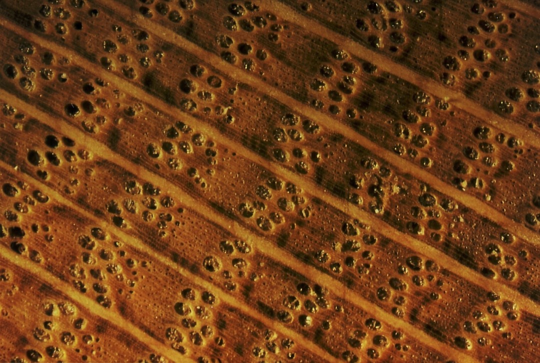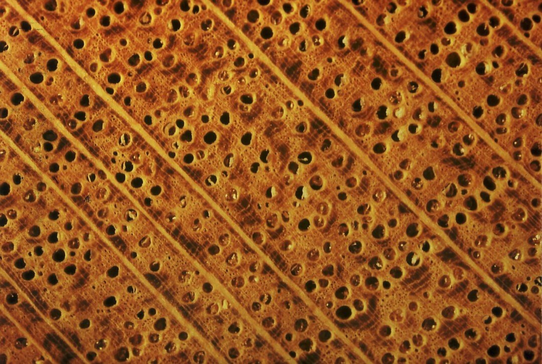 Bei Eiche (aber auch bei Robinie, Walnuss, Ulme und Kastanie) sind die Holzporen in einer Abfolge von großen Frühholzporen und kleinen Spätholzporen entsprechend der Jahrringgrenze angeordnet. Diese Hölzer gehören somit zu den sogenannten "ringporigen" Laubhölzern. Im Kernholz dieser Ringporer können glänzende Häutchen erkannt werden. Diese blasenförmigen Gebilde werden als Thyllen bezeichnet. Die besondere Aufgabe dieser Thyllen ist der Gefäßverschluss im Kernholz. Dadurch ist das Kernholz vor Schädlingsbefall geschützt und außerdem vor Flüssigkeitsverlust, da die Holzporen abgedichtet werden. Aus diesem Grund bleibt der Wein in einem Eichenfass, wogegen er aus einem Buchenfass durch das Holz hindurch auslaufen würde.